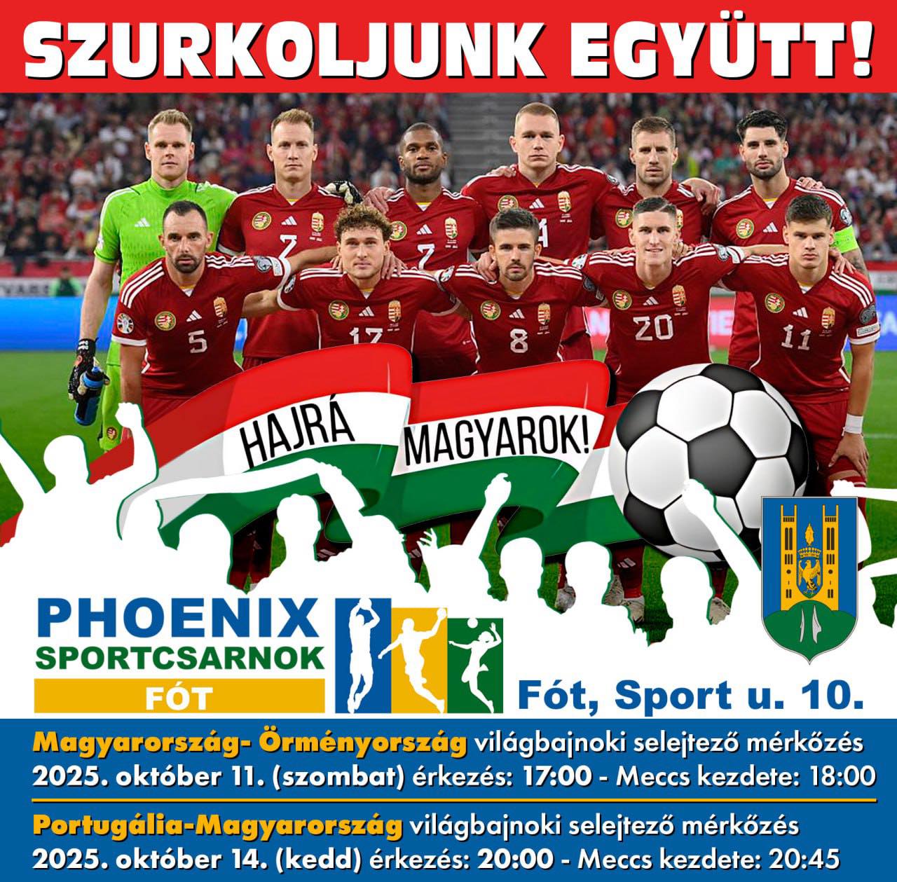 Folyamatosan gondolkozunk, dolgozunk azon, hogy olyan programokat szervezzünk, amelyek közösségi élményt adnak. Lehet ilyen akár egy közös fiesta, egy mozizás a piacon, vagy egy meccsnézés, amire a családok, baráti társaságok amúgy is összejönnének szurkolni. Most itt a lehetőség, hogy mi, fótiak is közösen próbáljuk kiszurkolni a kijutást a foci vb-re!
